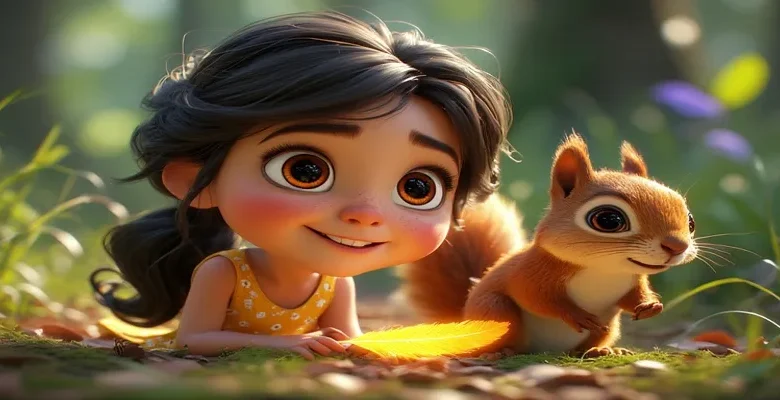Elif yaz tatilini anneannesiyle küçük bir köyde geçiriyordu. Evin hemen arkasında, yaprakları gümüş gibi parlayan bir orman vardı. Elif ormanı seviyordu ağaçlara dokunur, kuş seslerini dinler, toprağın kokusunu içine çekerdi. Bir sabah, patikada yürürken yerde tuhaf bir tüy buldu. Tüy gökkuşağı gibi parlıyor, sanki rüzgârda fısıldıyordu. Elif tüyü eline alınca, kulağının yanında minik bir ses duydu. Ben Fındık, dedi ses, bir sincap. Beni duyabiliyor musun? Elif şaşırdı, çünkü bir sincabın sesini gerçekten duyuyordu! Fındık ağacın dalından başını uzatıp gülümsedi. Bugün Hayvanlar Bayramı var, dedi Fındık. Ormanımızı kutluyoruz, ama hazırlıklarda yardıma ihtiyacımız var. Gelir misin?